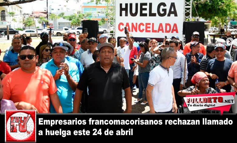 San Francisco de Macorís, RD. – Ante un llamao a huelga en la región del Cibao y una ciudad militarizada, empresarios se concentran en el parque Duarte de esta ciudad, llamando a trabajar este lunes y rechazando el paro de labores de este lunes 24 de abril.