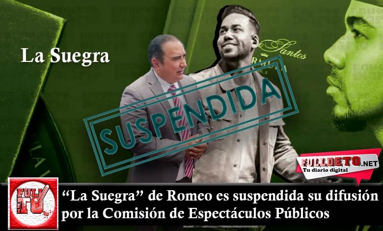 Santo Domingo, RD. – El tema “La suegra”, que interpreta el “Rey de la Bachata”, Romeo Santos, y que lleva sonando más de cinco meses, en todas las emisoras del país y la televisión nacional, esto sin contar con los medios digitales que son los de mayor alcance, fue prohibido ayer por la Comisión Nacional de Espectáculos Públicos y Radiofonía (CNEPR).