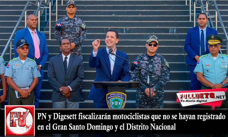 En rueda de prensa celebrada en el Palacio de la Policía, todos los conductores de motocicletas que no se hayan acogido al plan de registro serán fiscalizados por miembros de la Digesett y la Policía Nacional, en procura de llevar seguridad ciudadana en todo el Gran Santo Domingo y el Distrito Nacional.