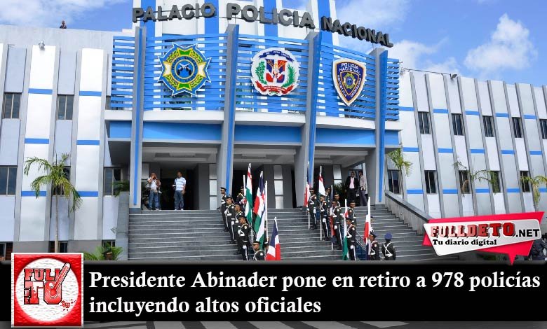 Santo Domingo, RD. – El presidente Luis Abinader dispuso el retiro de 978 miembros de la Policía Nacional, por haber alcanzado el tiempo máximo de permanencia en el grado otorgado, por edad o antigüedad en el servicio.