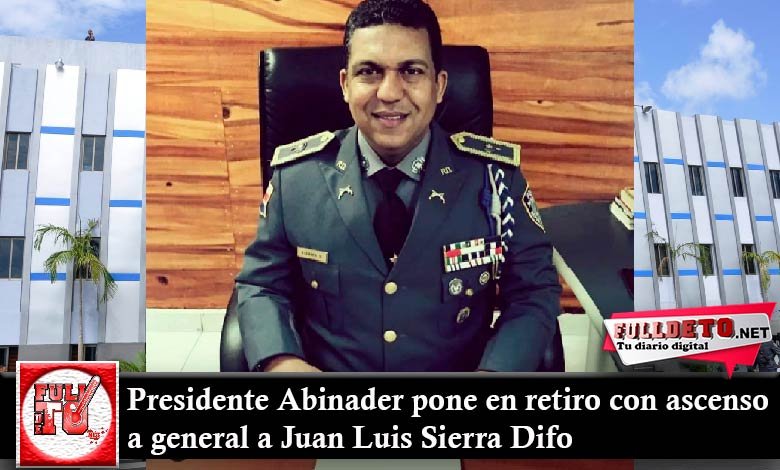 San Francisco de Macorís, RD. – El presidente de la República Luis Abinader mediante los decretos 121-23 y 122-23 asciende al coronel Juan Luis Sierra Difo a general y puesto en honrosa situación de retiro.
