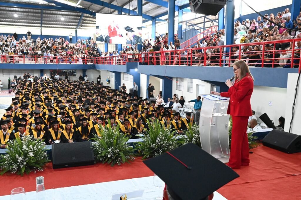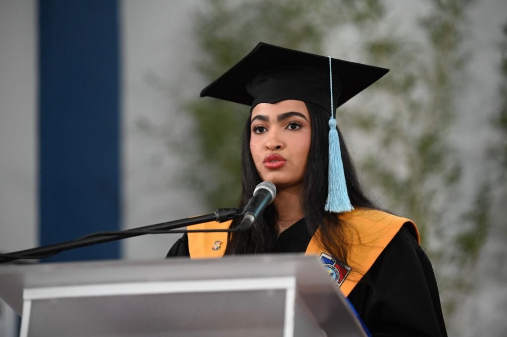 🎙️ La destacada periodista Edith Febles tuvo a su cargo el discurso central, en el que llamó a los nuevos profesionales a vivir con ética, recordar sus raíces y mantener los pies en la tierra.